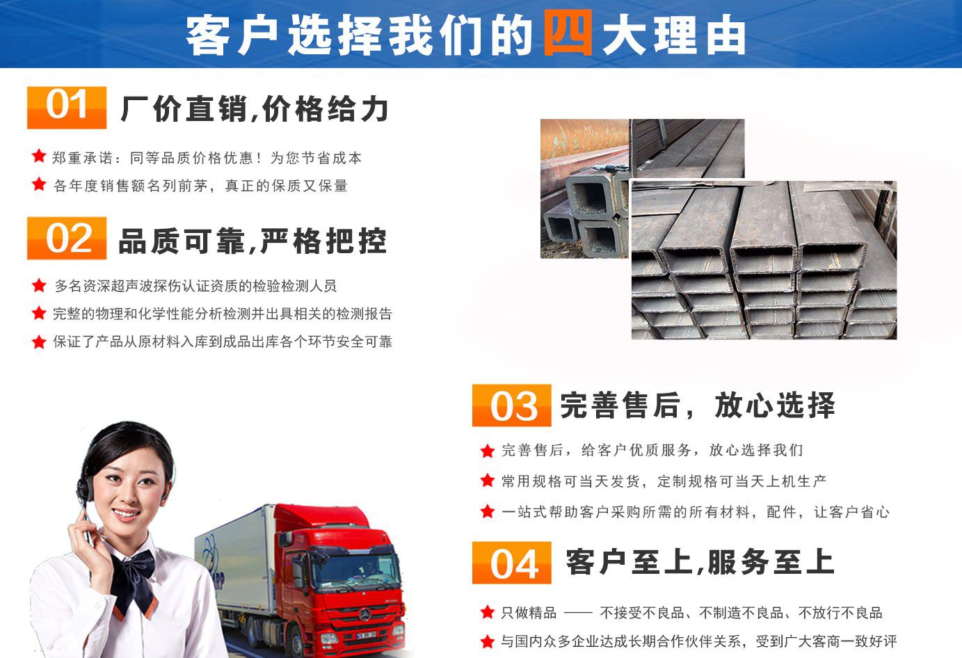 無錫盛灝特鋼有限公司長期銷售Q355B方矩管,鍍鋅方矩管,大口徑方矩管,厚壁方矩管,無縫方矩管等各種方管產(chǎn)品!產(chǎn)品廣泛應(yīng)用于鋼結(jié)構(gòu)建筑(鋼管混凝土、管樁、管桁架,橋梁、海上作業(yè)平臺、港口碼頭建設(shè)、電視通訊鐵塔、電力鐵塔等鋼結(jié)構(gòu)管)。壓力管道(石油、天然氣、煤漿等輸送)、機(jī)械制輥等領(lǐng)域。 公司自創(chuàng)辦以來,一直堅(jiān)持“誠信合作,共同發(fā)展”的經(jīng)營理念。 一直以來我們本著“以誠相待,以信為本,互利互惠,共同發(fā)展”的長期方針,充分發(fā)揮現(xiàn)貨資源優(yōu)勢為您提供“可靠的產(chǎn)品、過硬的質(zhì)量、完善的服務(wù)”,歡迎廣大新老客戶前來洽談業(yè)務(wù)。 公司以“至誠至信,雙利雙贏”為根本宗旨,堅(jiān)持科技興企的發(fā)展策略,恪守商規(guī),創(chuàng)新進(jìn)去,贏得聲譽(yù),贏得了市場,得到了社會各階層的認(rèn)可。公司以雄厚的實(shí)力、可靠的質(zhì)量、儲存鋼管門類齊全、庫存量大之優(yōu)勢,本著守法、守信、創(chuàng)新的理念,打造精品,發(fā)展鋼管多元化品種,滿足客戶各種需求,以低廉的價(jià)格、熱情的服務(wù)面向國內(nèi)外客戶,歡迎鋼管界同仁加盟!我們?yōu)榭蛻籼峁┲艿降姆?wù) ! 公司為客戶提供以下服務(wù) 服務(wù)三保: 保證質(zhì)量、保證時(shí)間、保證數(shù)量。 服務(wù)宗旨: 雄厚的實(shí)力、優(yōu)質(zhì)的產(chǎn)品、低廉的價(jià)格、周到的服務(wù)。 批零兼營,一支起定。...
